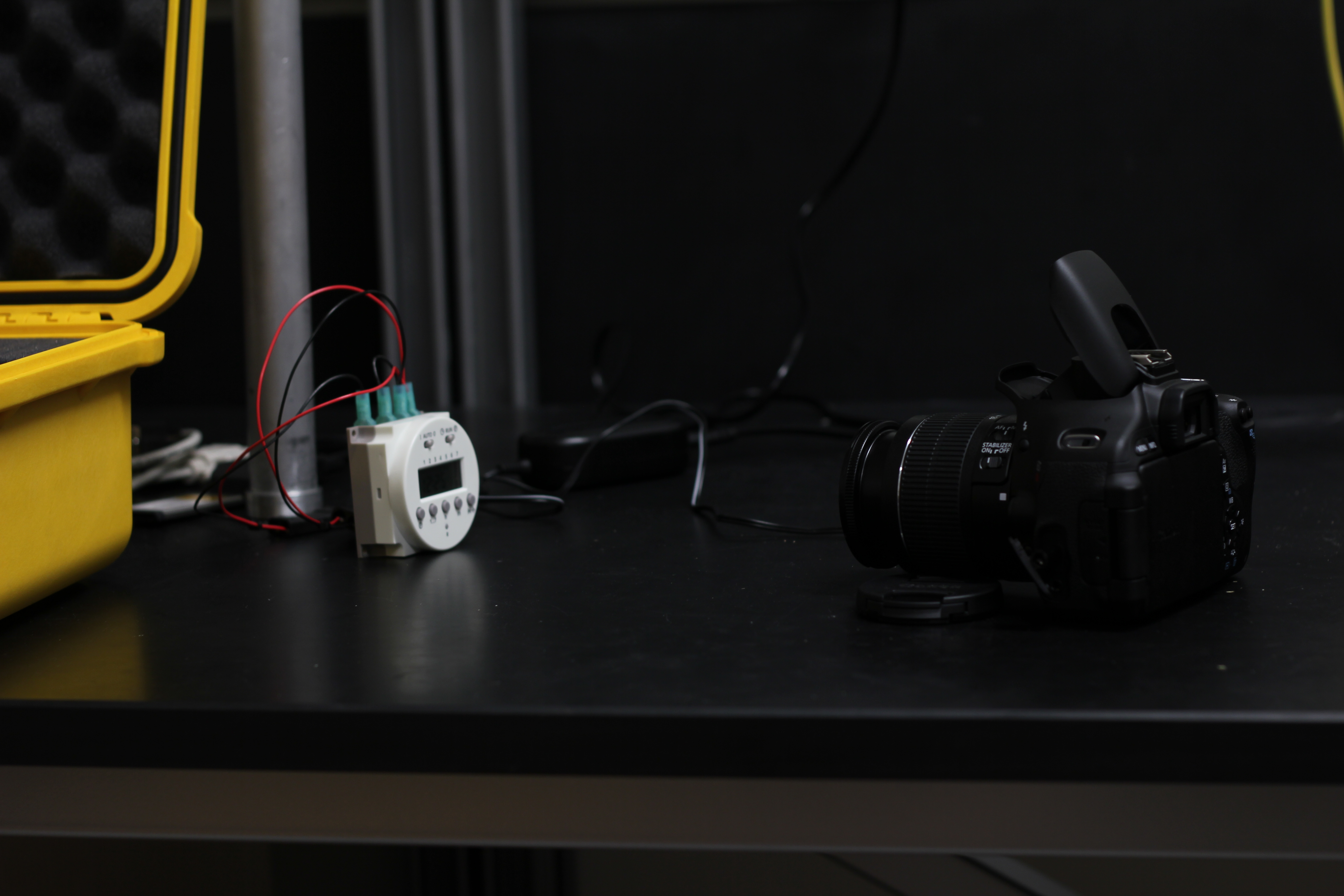 The most important component of the build is the power system. I replaced the standard camera battery with a commercially available battery adapter, which is normally used to power a camera directly from a mains socket. I wired this adapter into a DC timer, which is essentially a switch which opens and closes the power circuit at user defined times. The other end of the timer was then wired to a high capacity (10 Ah) 7.4V lithium polymer battery, originally designed for use in remote controlled aircraft.