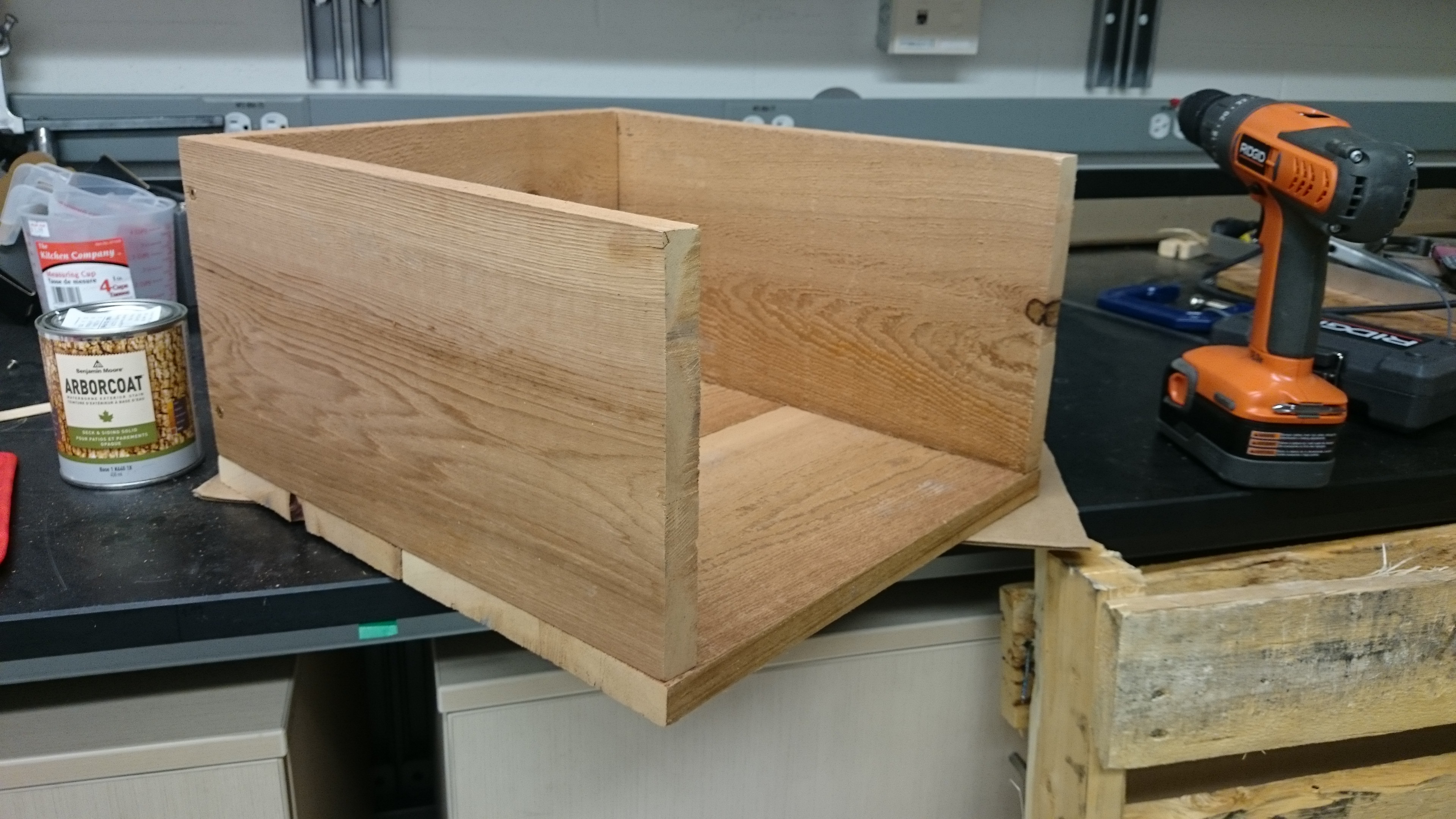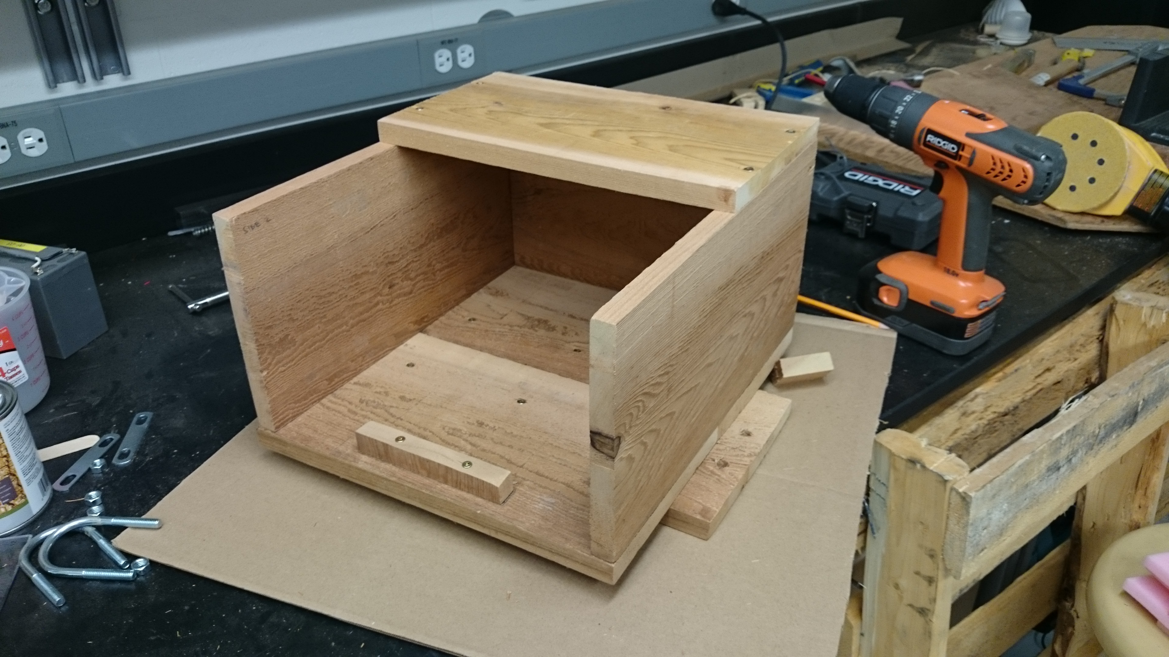 Yesterday, I built the aforementioned wooden shelter for the camera. This will act as a mount for the camera, protect the window from damage, dirt, and droplet build up, and reduce excessive heating from the sun. It was constructed using two 1″x8″x8′ pieces of cedar, some U-bolts, and assorted screws. I’m not a carpenter, and this was just a design that I thought up to solve a problem; there are probably far more elegant solutions! Below are some images from the build.