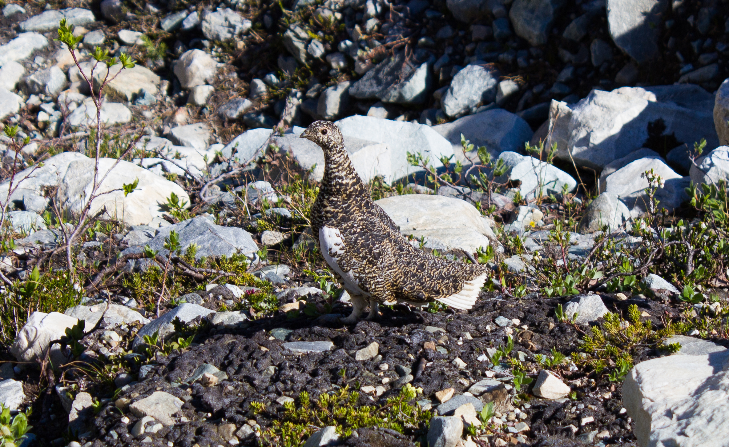 Rock Ptarmigan. I came across quite a few of these, usually only noticing them when I was within a couple of meters, and they would burst from behind a rock , freaking me and themselves out.