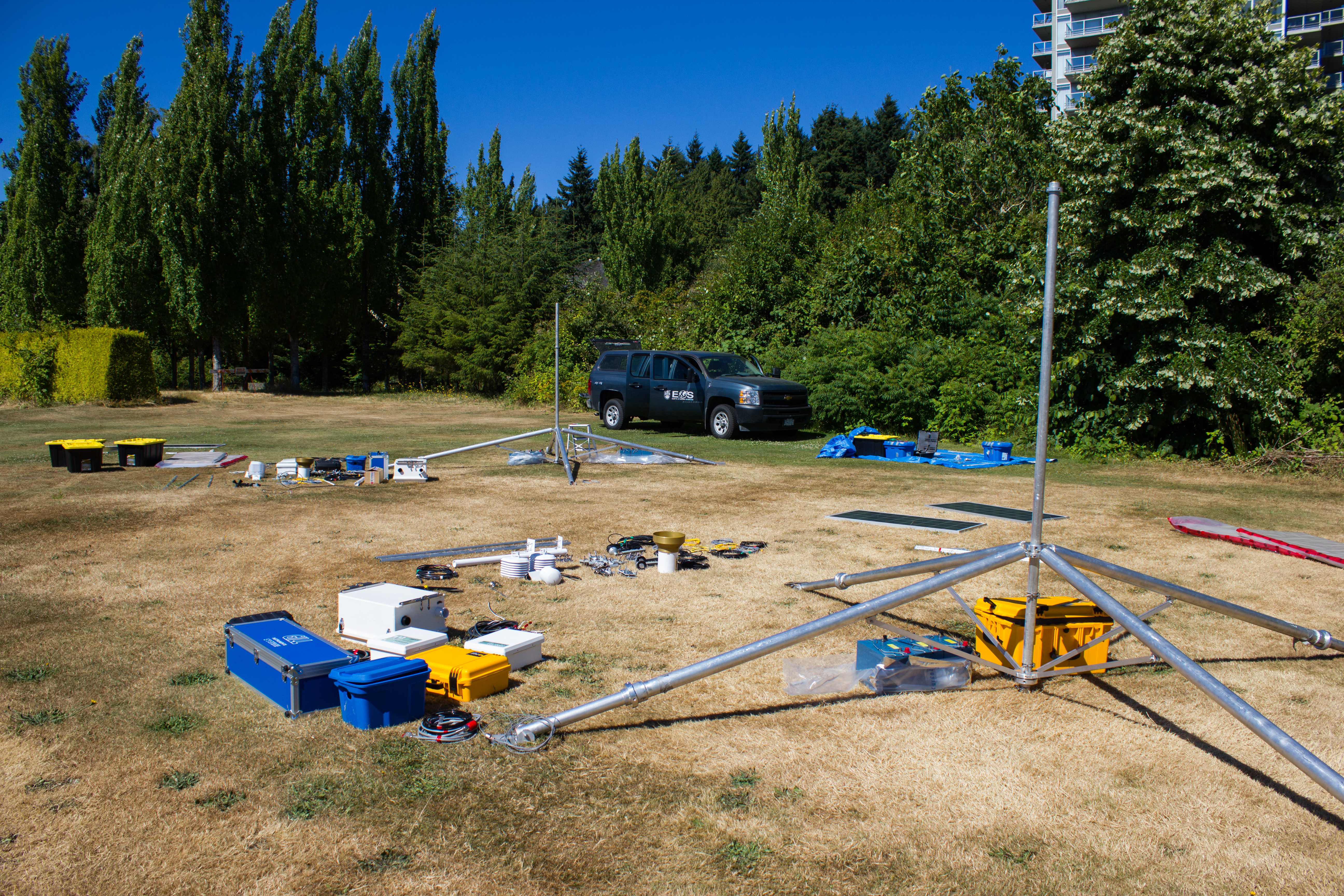 Test set up of the two stations for the 2015 field campaign, on the grounds of the University of British Columbia (UBC).